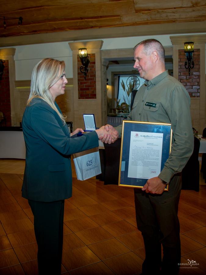 Podczas wydarzenia Burmistrz Miasta Hrubieszowa Marta Majewska wręczyła panu Nadleśniczemu Arkadiuszowi Zającowi pamiątkowy medal z okazji 625-lecia Hrubieszowa – w podziękowaniu za dotychczasową, bardzo dobrą współpracę Nadleśnictwa Strzelce z miastem Hrubieszów.