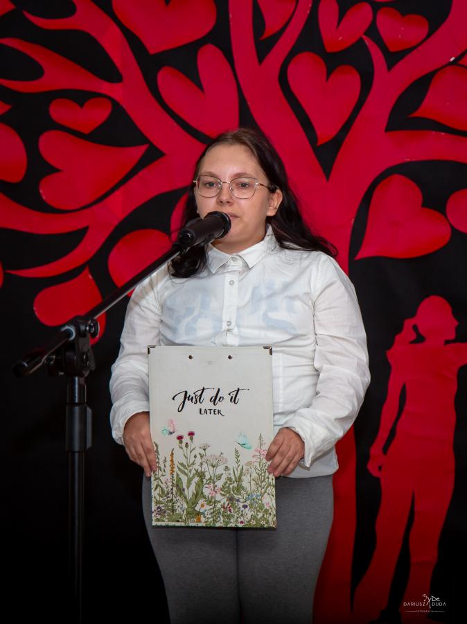 30 października 2025 roku w Hrubieszowskim Domu Kultury odbył się III Konkurs Recytatorski „Miłość i rodzina w poezji polskiej” pod honorowym patronatem Burmistrza Miasta Hrubieszowa. Wydarzenie zgromadziło liczne grono miłośników poezji z naszego regionu. Celem konkursu było popularyzowanie piękna polskiego słowa oraz promowanie wartości rodzinnych i miłości obecnych w literaturze narodowej. Uczestnicy rywalizowali w trzech kategoriach wiekowych: uczniowie szkół podstawowych, młodzież szkół ponadpodstawowych oraz dorośli miłośnicy poezji. Wśród uczestników znaleźli się przedstawiciele różnych placówek i środowisk, m.in. Powiatowego Zespołu Placówek Szkolno-Wychowawczych w Hrubieszowie, Warsztatu Terapii Zajęciowej w Oszczowie i w Hrubieszowie, a także Środowiskowych Domów Samopomocy w Modryniu i Hrubieszowie. Recytatorzy zaprezentowali wysoki poziom artystyczny, ukazując różnorodne interpretacje utworów poświęconych tematyce miłości i rodziny. Publiczność mogła podziwiać zarówno klasyczne wiersze polskich poetów, jak i współczesne teksty w poruszających, często bardzo osobistych wykonaniach. Na zakończenie konkursu laureaci otrzymali dyplomy i nagrody, a wszyscy uczestnicy – gratulacje i podziękowania za udział oraz zaangażowanie. Wydarzenie przebiegło w ciepłej i przyjaznej atmosferze, przypominając, jak istotne w życiu człowieka są miłość, bliskość i