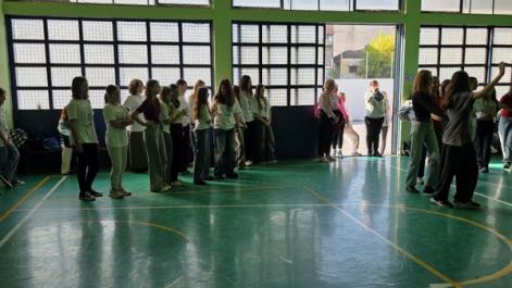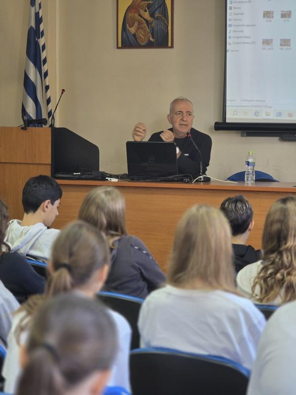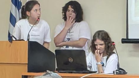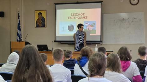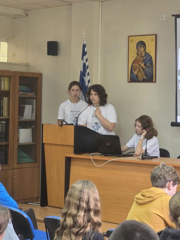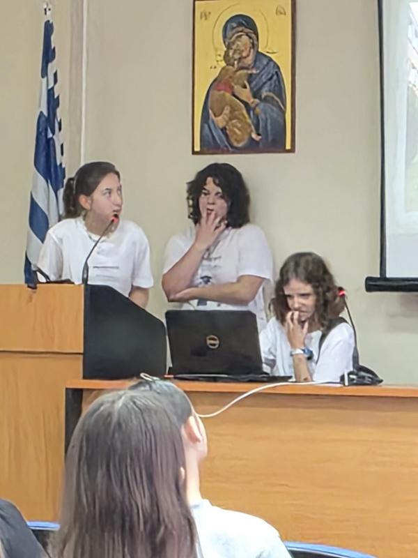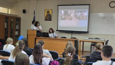 Nie zabrakło także zajęć z nowoczesnych technologii – uczniowie pracowali z programem Canva, tworząc prezentacje graficzne o Grecji. Zajęcia w greckiej szkole była okazją do wspólnej polsko-greckiej rywalizacji sportowej w siatkówce i koszykówce oraz rozmów o zdrowym stylu życia.