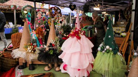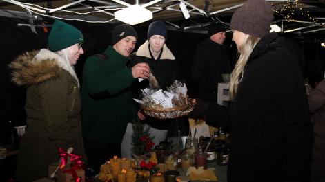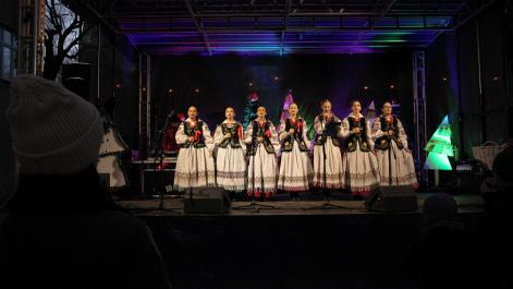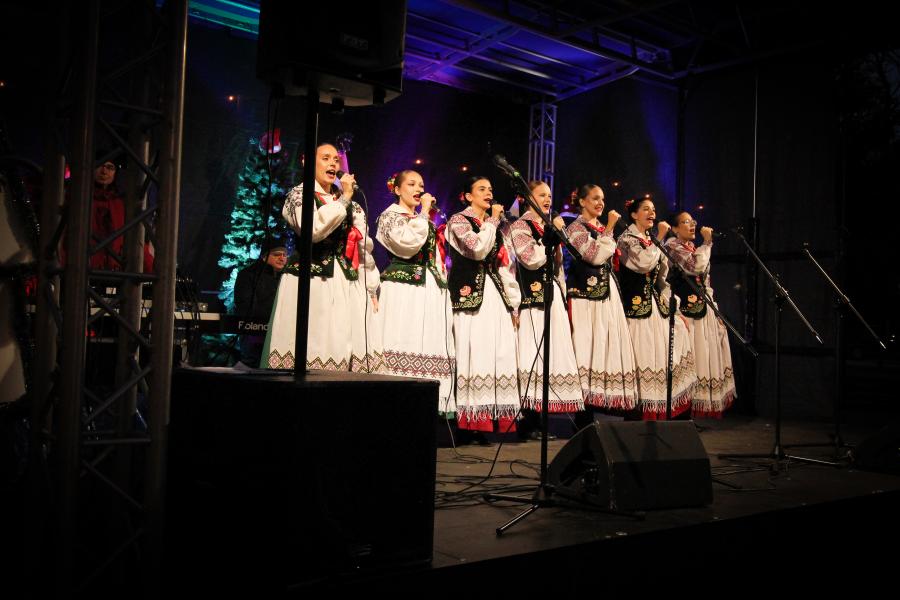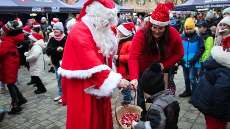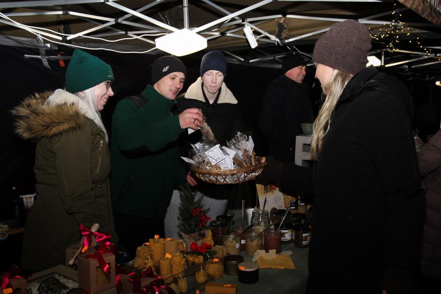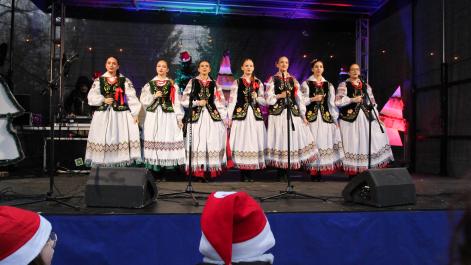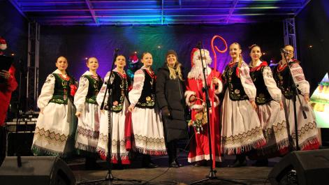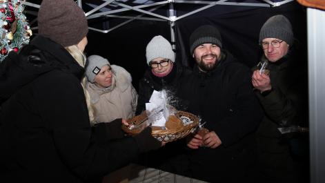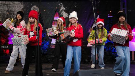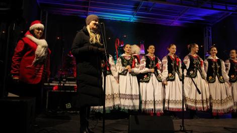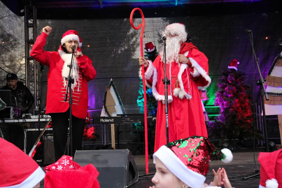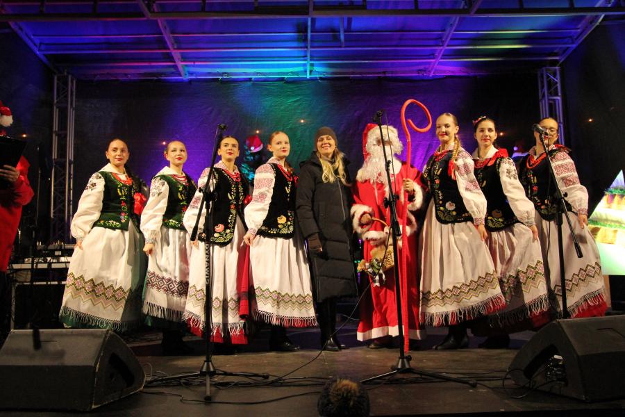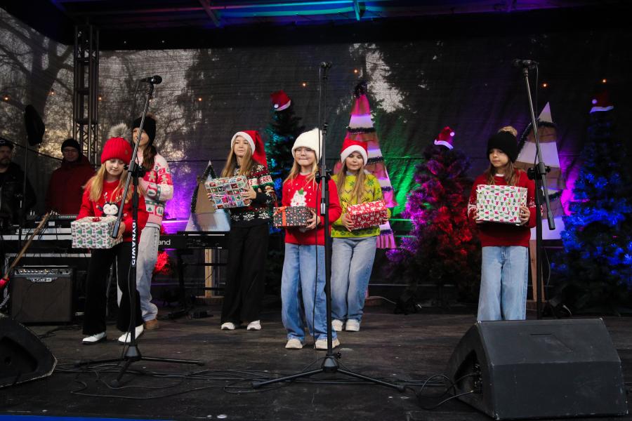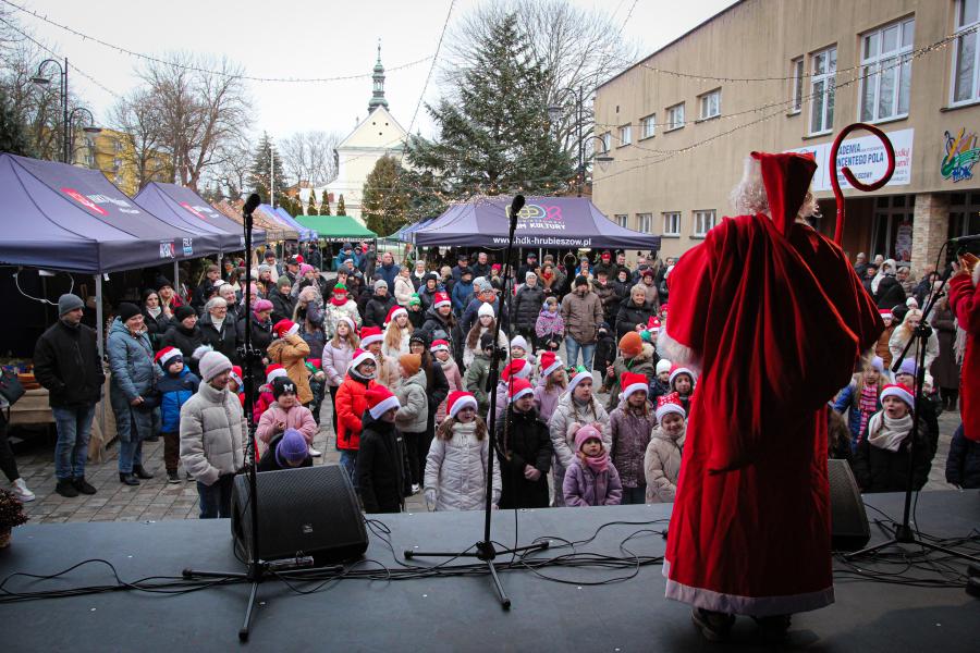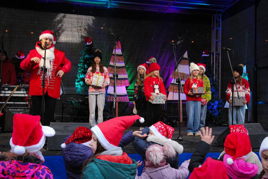 Mieszkańcy Hrubieszowa licznie odwiedzili Kiermasz Świąteczny, który był okazją do wspólnego spędzenia czasu, zakupów świątecznych oraz skorzystania z bogatego programu artystycznego. Na scenie zaprezentował się debiutujący chór Szkoły Podstawowej nr 2 w Hrubieszowie, który po raz pierwszy wystąpił przed tak liczną publicznością. Wystąpiły również solistki Zespołu Pieśni i Tańca Ziemi Hrubieszowskiej oraz zespół tańca nowoczesnego działający przy Hrubieszowskim Domu Kultury, zapewniając widzom różnorodny i atrakcyjny program artystyczny. Podczas kiermaszu swoje stoiska zaprezentowało 20 wystawców oferujących rękodzieło, świąteczne dekoracje oraz wyjątkowe, ręcznie wykonane upominki. Najmłodsi uczestnicy wydarzenia mogli wziąć udział w konkursach i zabawach, spotkać Świętego Mikołaja rozdającego cukierki oraz poczęstować się pierniczkami przygotowanymi przez Burmistrz Miasta Hrubieszowa, Martę Majewską. Całość dopełniała świąteczna kawiarenka HDK, w której serwowano m.in. gorącą czekoladę oraz aromatyczną herbatę, idealne na zimowe popołudnie. Dziękujemy wszystkim artystom, wystawcom oraz mieszkańcom za udział w wydarzeniu i wspólne stworzenie miłej, świątecznej atmosfery na placu przy Hrubieszowskim Domu Kultury.