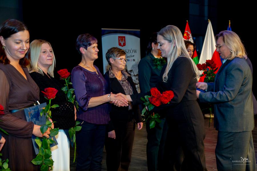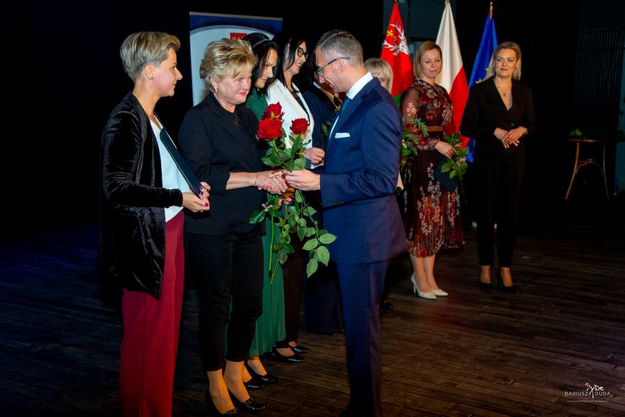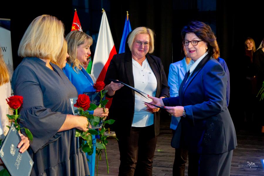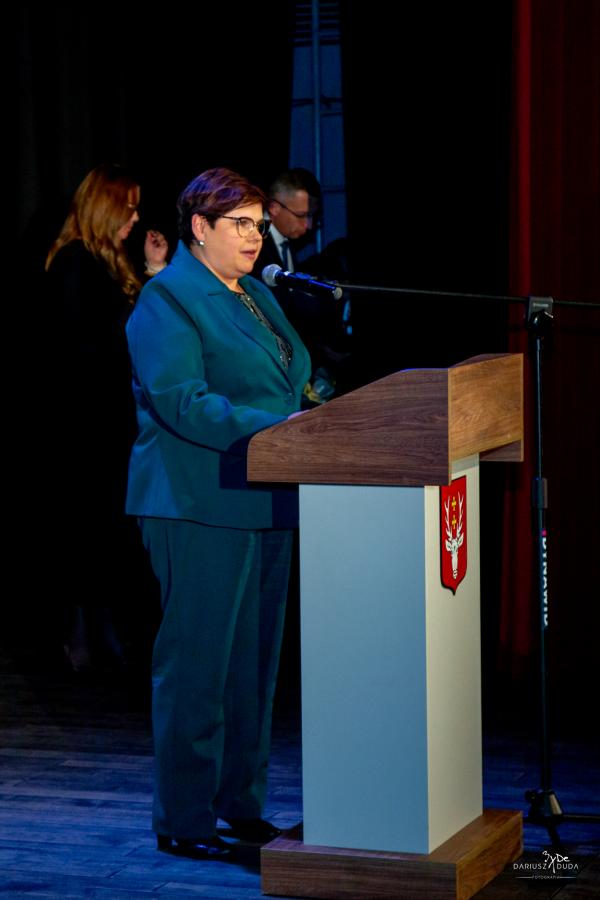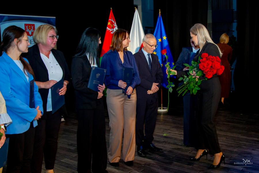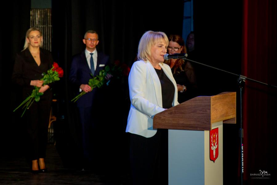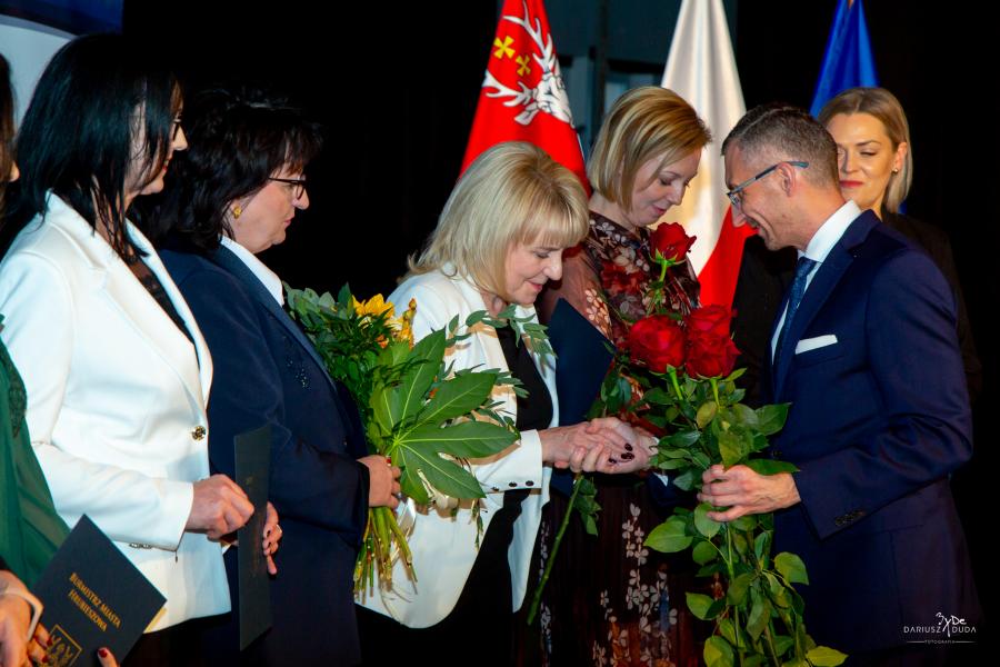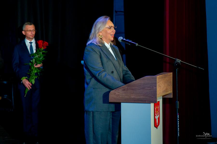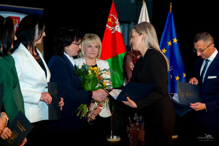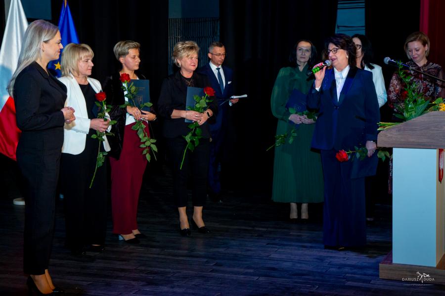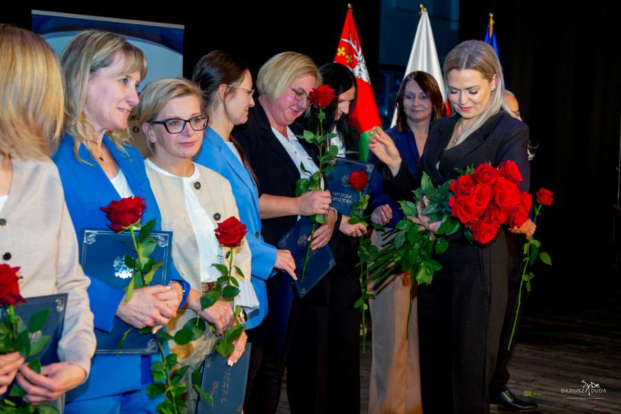 Marta Majewska Burmistrz Miasta Hrubieszowa podziękowała wszystkim pracownikom oświaty za codzienny trud, odpowiedzialność i poświęcenie. Podkreśliła, że edukacja to nie tylko przekazywanie wiedzy, ale również wspieranie, budowanie poczucia wartości i wskazywanie autorytetów.