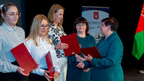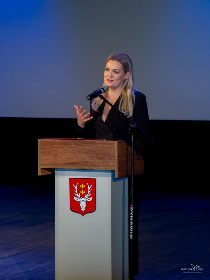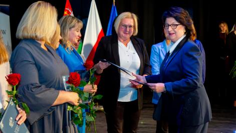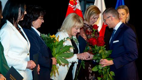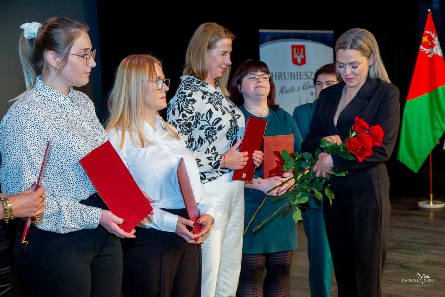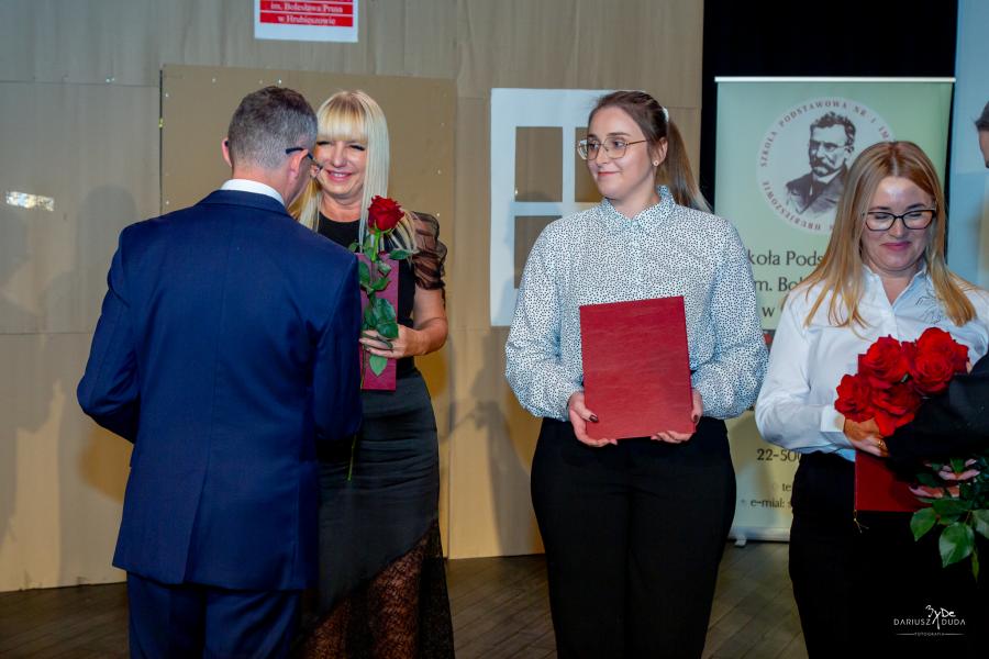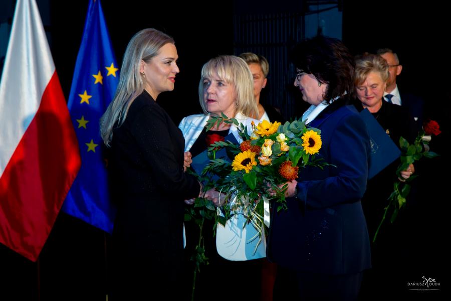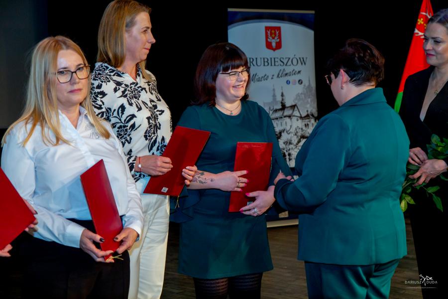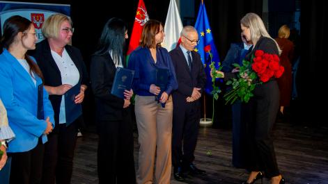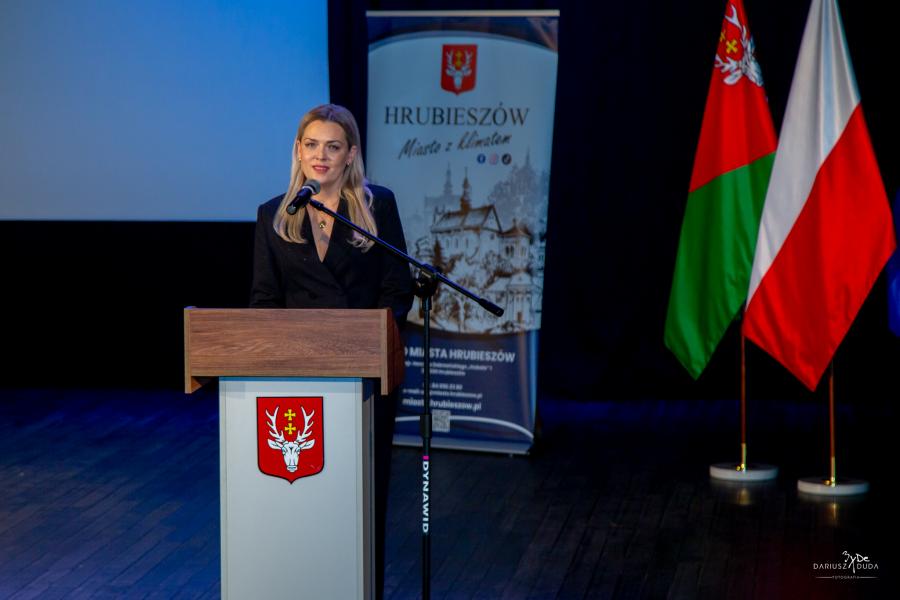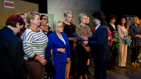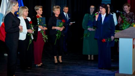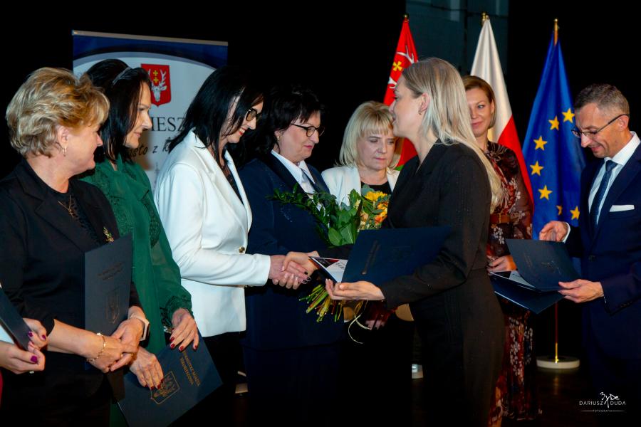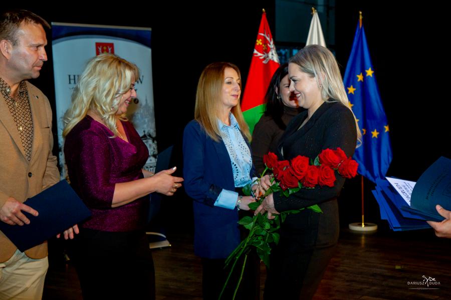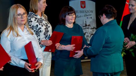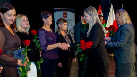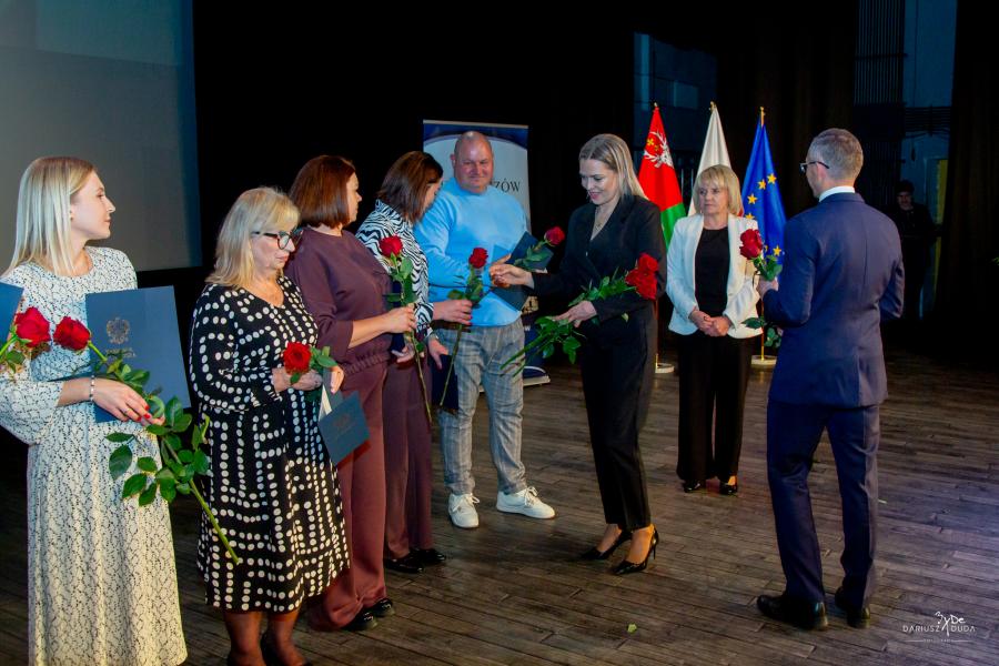 Marta Majewska Burmistrz Miasta Hrubieszowa podziękowała wszystkim pracownikom oświaty za codzienny trud, odpowiedzialność i poświęcenie. Podkreśliła, że edukacja to nie tylko przekazywanie wiedzy, ale również wspieranie, budowanie poczucia wartości i wskazywanie autorytetów.