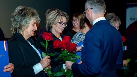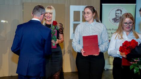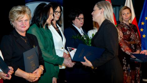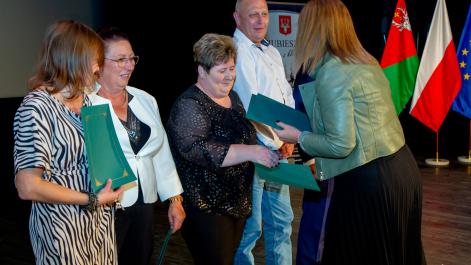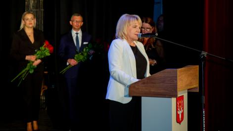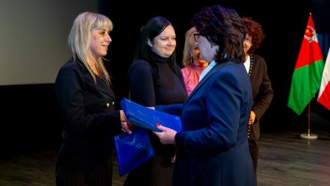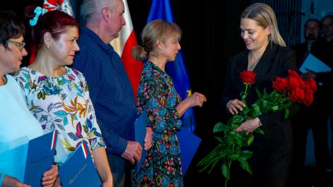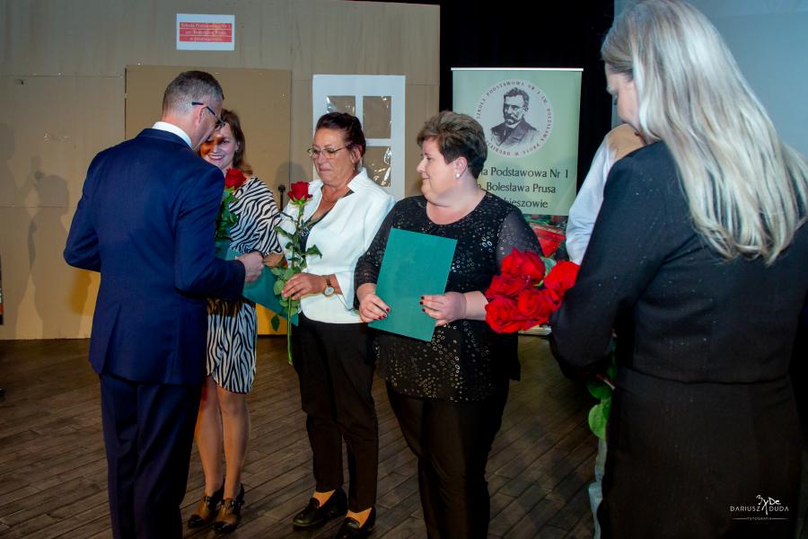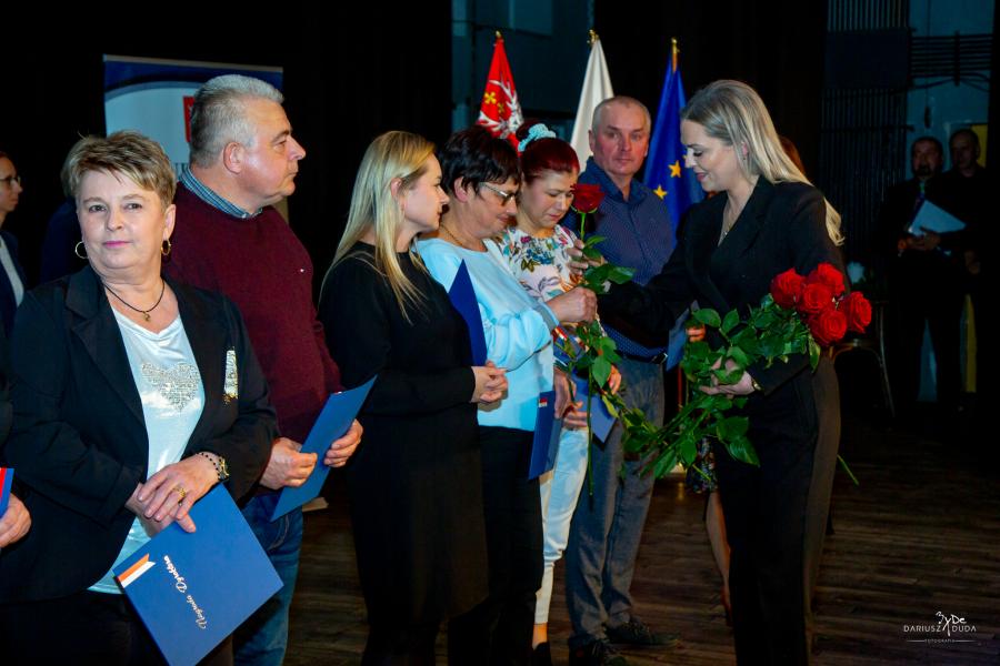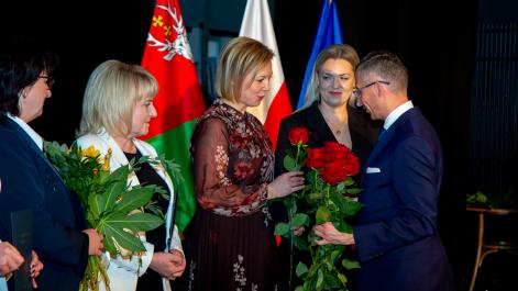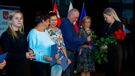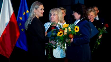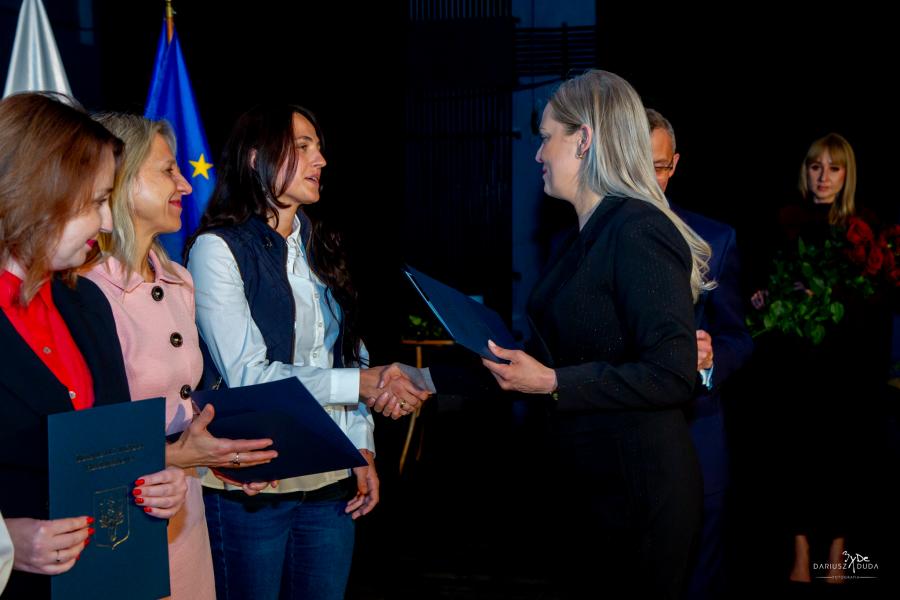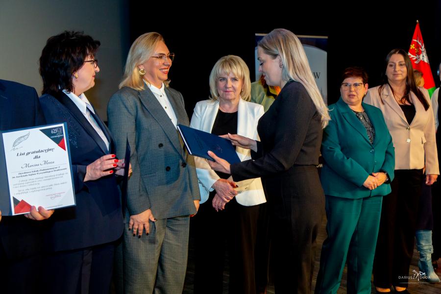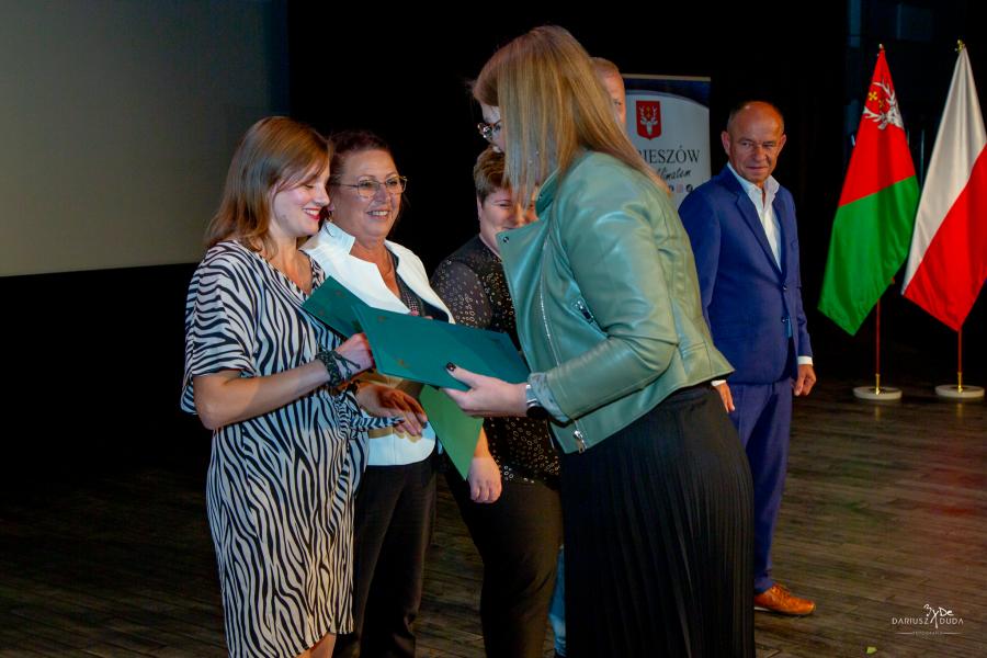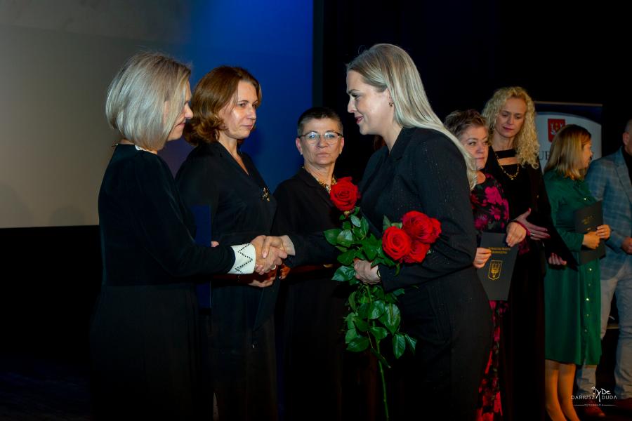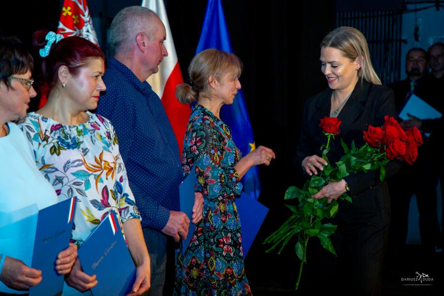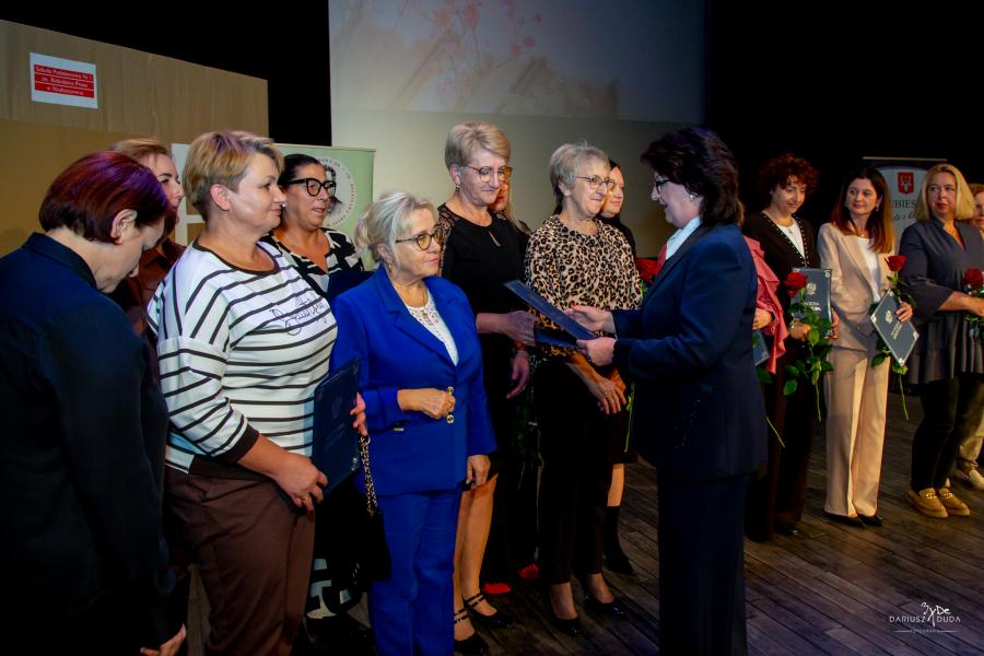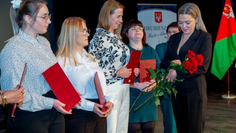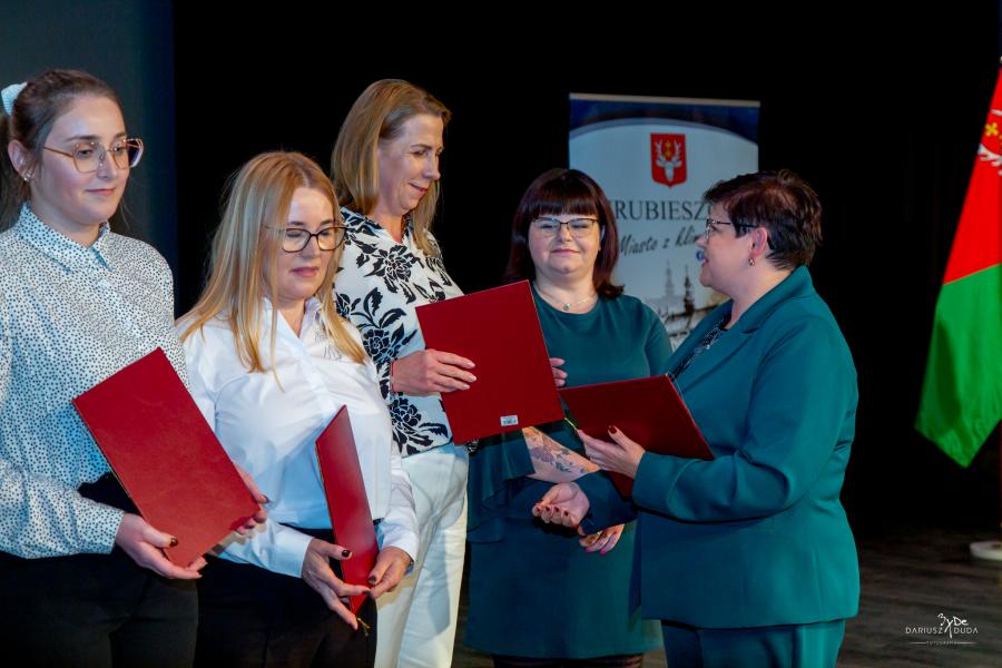 Marta Majewska Burmistrz Miasta Hrubieszowa podziękowała wszystkim pracownikom oświaty za codzienny trud, odpowiedzialność i poświęcenie. Podkreśliła, że edukacja to nie tylko przekazywanie wiedzy, ale również wspieranie, budowanie poczucia wartości i wskazywanie autorytetów.