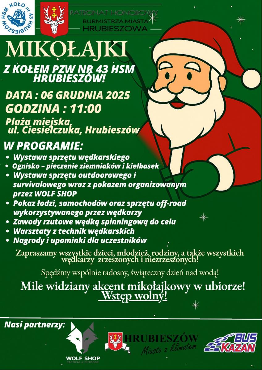6 grudnia 2025 roku o godzinie 11.00 na plaży miejskiej przy ul. Ciesielczuka w Hrubieszowie odbędą się Mikołajki zorganizowane przez Koło PZW nr 43 HSM Hrubieszów pod Patronatem Honorowym Burmistrza Miasta Hrubieszowa Marty Majewskiej.