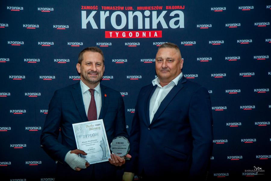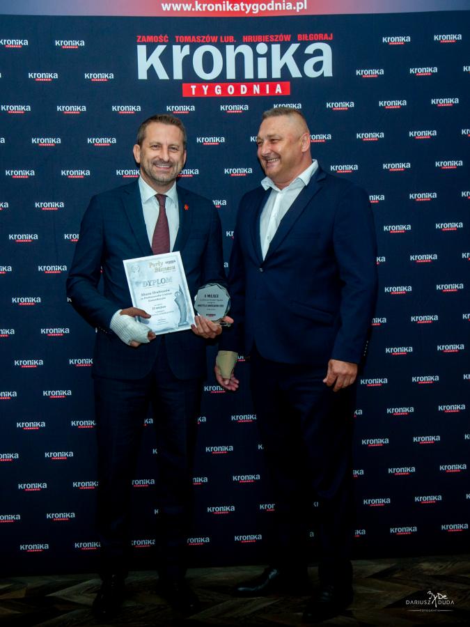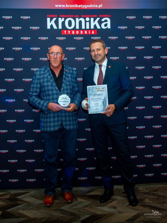 Hrubieszów ponownie znalazł się w gronie najlepszych w prestiżowym plebiscycie „Perły Biznesu” organizowanym przez Kronikę Tygodnia. W tegorocznej edycji Hrubieszowskie Centrum Komunikacyjne zajęło drugie miejsce w kategorii „Inwestycja samorządowa 2025”. Nagrodę w imieniu miasta odebrał Paweł Wojciechowski Zastępca Burmistrza Hrubieszowa. Hrubieszowskie Centrum Komunikacyjne to nowoczesny, ekologiczny i funkcjonalny węzeł przesiadkowy, który stał się wizytówką miasta. Obiekt zaprojektowany został z myślą o bezpieczeństwie, wygodzie oraz przyjaznym otoczeniu dla mieszkańców i gości odwiedzających Hrubieszów. To kolejne wyróżnienie dla samorządu w tym plebiscycie. W 2023 roku pierwsze miejsce w kategorii „Inwestycja samorządowa” zdobyła Pływalnia FALA. Warto również odnotować, że w kategorii „Produkt roku” nominację otrzymały naturalne soki jabłkowe i jabłkowo-gruszkowe pochodzące z gospodarstwa sadowniczego Zdzisława Szczęka. Sama nominacja stanowi duże wyróżnienie i świadczy o docenieniu lokalnych producentów. Gratulujemy wszystkim nagrodzonym i nominowanym w tegorocznej edycji „Pereł Biznesu”. To powód do dumy dla całej społeczności Hrubieszowa oraz dowód, że inwestycje i inicjatywy podejmowane w naszym mieście spotykają się z uznaniem i pozytywną oceną.