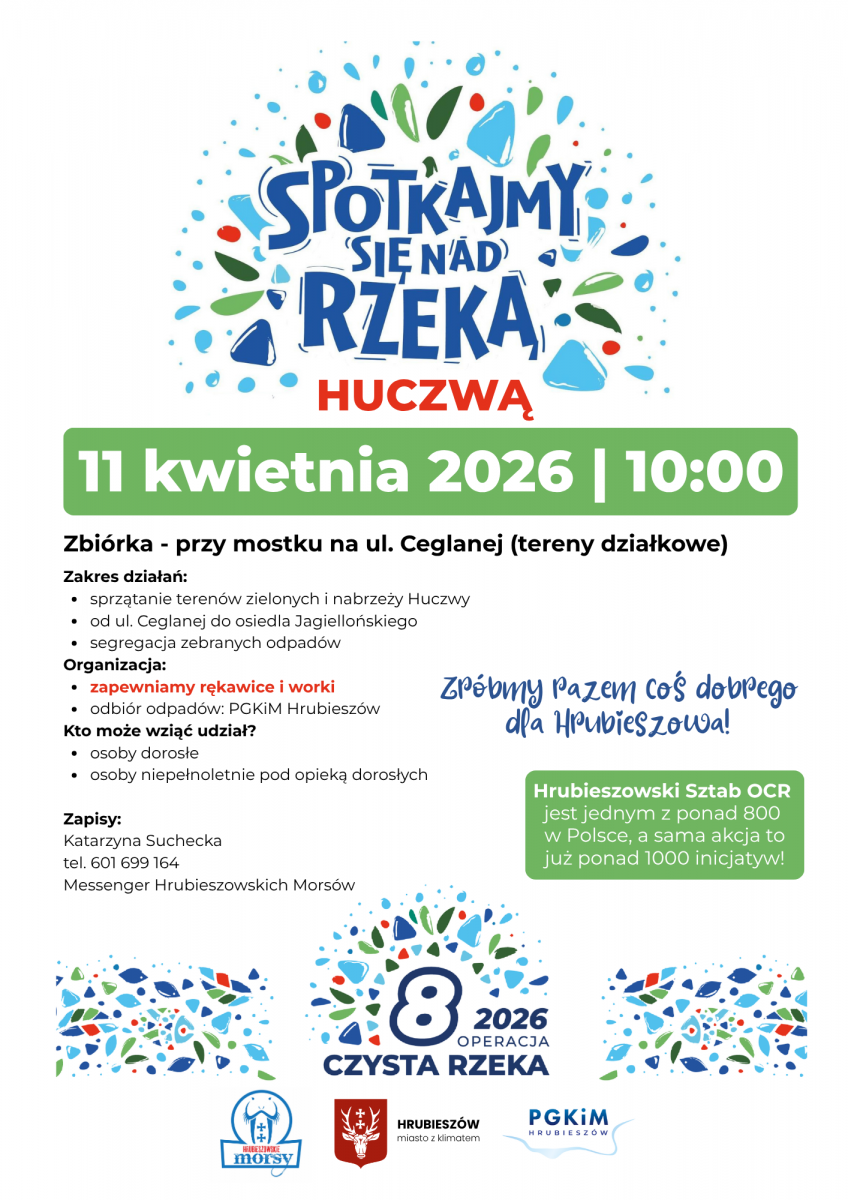 Sprzątanie odbędzie się w sobotę, 11.04.2025 r. od godz. 10.00. Może potrwać około 3-4 godzin. Zbiórka przy terenach działkowych, przy mostku na ul. Ceglanej. Śmieci zostaną zebrane z terenu zielonego i nabrzeży Huczwy od ulicy Ceglanej do osiedla Jagiellońskiego. Zostaną posegregowane przez uczestników akcji i pozostawione w wyznaczonym miejscu. Organizator zapewnia rękawice i worki, wywozem zebranych śmieci zajmie się Przedsiębiorstwo Gospodarki Komunalnej i Mieszkaniowej w Hrubieszowie.