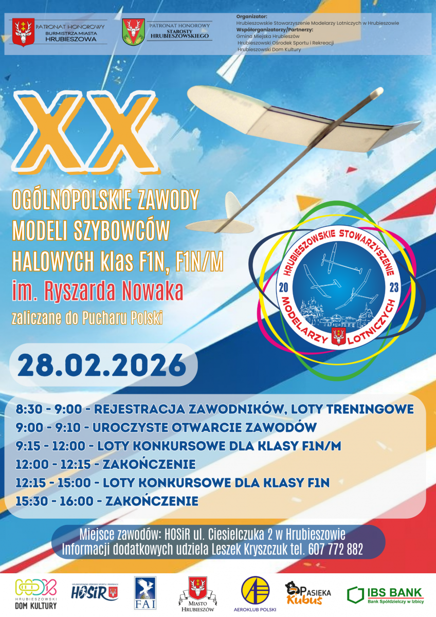 Już w sobotę, 28 lutego 2026 roku, hala Hrubieszowskiego Ośrodka Sportu i Rekreacji stanie się areną zmagań najlepszych modelarzy lotniczych. Wydarzenie to, organizowane po raz dwudziesty przez Hrubieszowskie Stowarzyszenie Modelarzy Lotniczych, a w tym roku nosi imię Ryszarda Nowaka i na stałe wpisało się w tradycję miasta.
