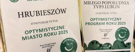 Miasto Hrubieszów otrzymało tytuł Optymistycznego Miasta Roku 2025, przyznany przez Fundację Jestem...